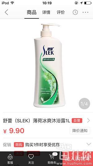 手机端:舒蕾(SLEK)薄荷冰爽沐浴露1L 9.9元