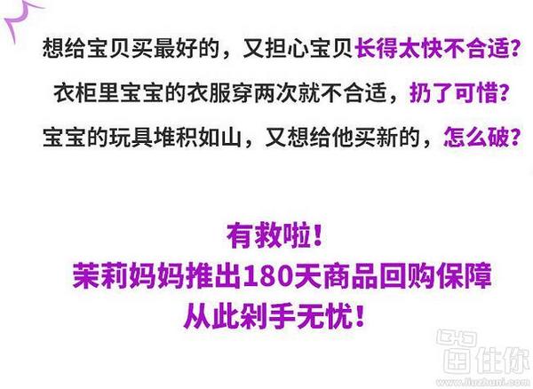 宝宝成长非常快,很多爸爸妈妈都会出现说买了东西但是又没用上的经历;现在专注于做母婴产品的茉莉妈妈就推出了一个“180天商品回购保障”计划;