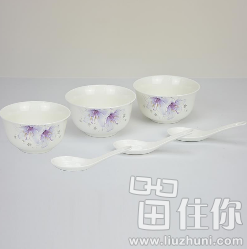 瓷碗3个+瓷勺3个,8.8元包邮,一共3对,非常便宜喔~