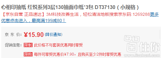 京东售价15.9元,购买2件以上可以享受7.9元/件,日常的半价左右,非常实惠,还不用买太多,刚需的盆友可以看看;