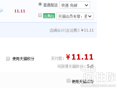 天猫旗舰店特价11.1元,商品界面显示要运费,但是测试后发现是可以包邮的;
