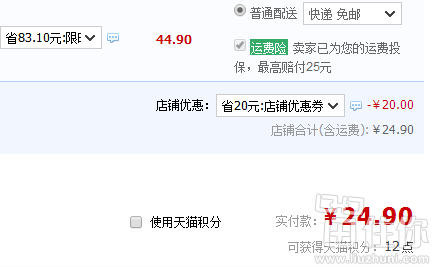 天猫旗舰店售价44.9元,可以领取店铺的20元优惠券,实付24.9元包邮到手;