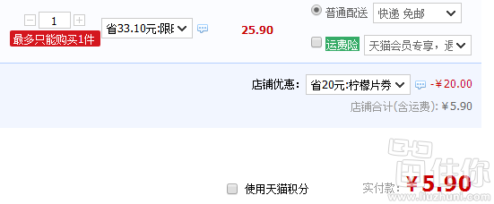 我也不知道,我付款的时候自动减了两元的天猫购物券