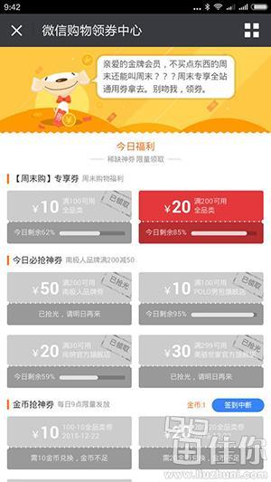 京东商城,周末再度放出微信端专享的满100减10、满200减20的全品类优惠券。这张券可以再微信端上直接使用,并且可以配合全品类的白条券。