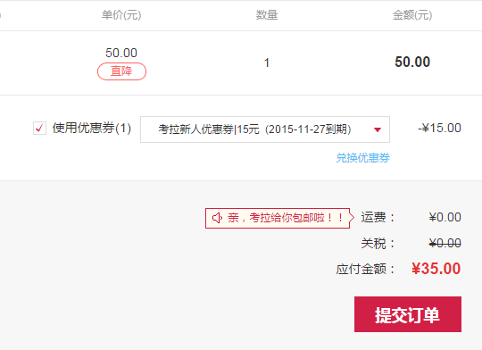考拉海购目前售价50元,可使用留住你独家提供的考拉海购15元代金券,券后实付35元包邮,近期好价,需要可入手;