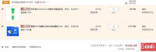 例如买3件然后凑单29.9元的小甘菊护手霜75ml,实付106.9元就可以包邮到手,平常这个面膜一盒就要70多!