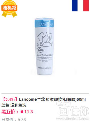 0点秒杀# Lancome兰蔻 轻柔卸妆乳(眼脸)50ml 蓝色 11元
