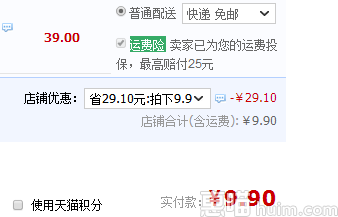 天猫旗舰店目前39元在售,拍下立减29.1元,实付9.9元包邮到手,价格白菜,买买买~