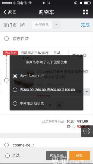京东售价129元,用微信端打开可参加满2件8折活动,再叠加页面领取的199-100券,实付106.4元,折53.2元/个,有白条可以更低;