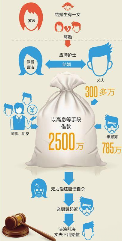 记者从江门中院了解到,真正的“曹洁”其实是台山市人,但2011年4月已移居加拿大,罗云离婚之后便冒用其身份,并以“曹洁”的身份应聘成为了江门某医院的骨科护士,利用营造出来的“富婆”形象、别人对她的信任以及人们贪图高额利息的心理,罗云进行诈骗屡试不爽,其间有人要其还钱,她便“拆了东墙补西墙”。在她行骗期间,竟无一人识破她的骗局,就连她的亲舅父也不能幸免。