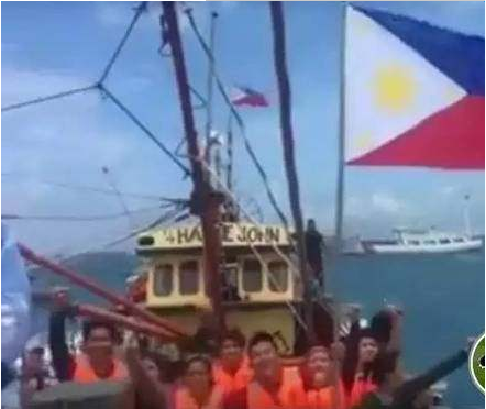 该团体发布的声明表示,12日上午7点半左右,他们到达了黄岩岛海域,所乘渔船遭到了2艘中国海警快艇拦截。中国命令菲渔船返回菲律宾,双方对峙了4小时左右。